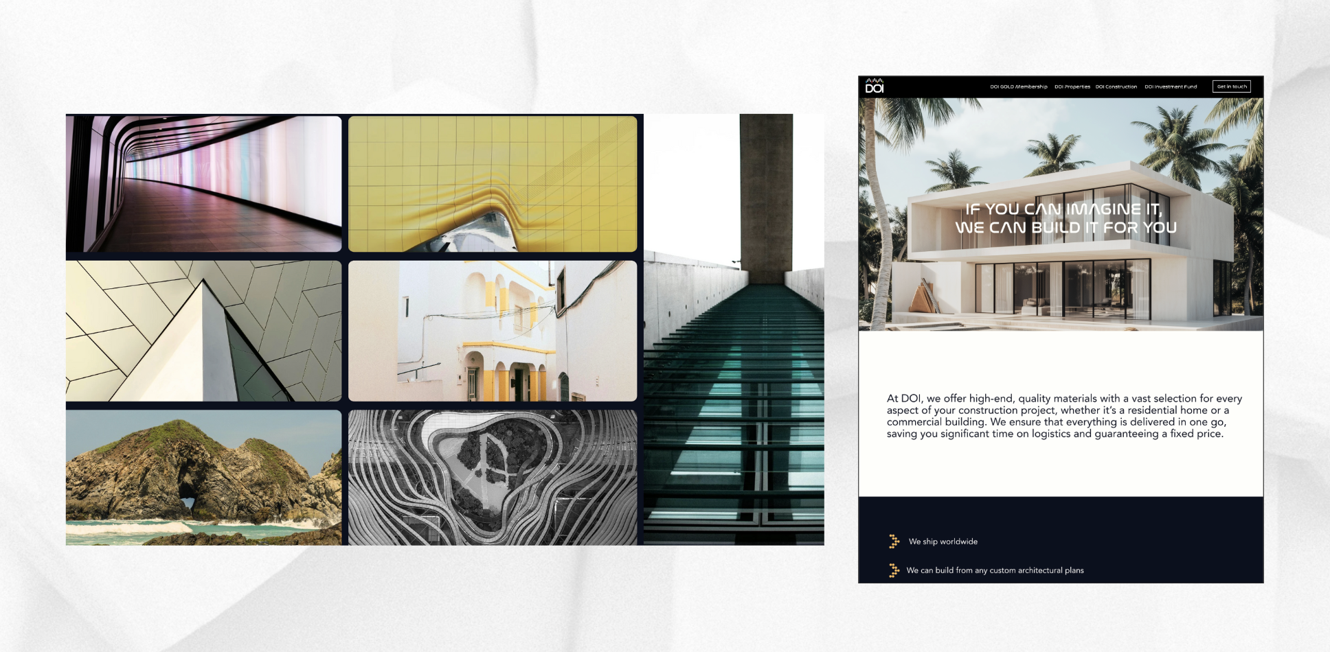 Here, we focused on brand design, the selection and creation of AI-generated images to support the brand storytelling, and web design for DOI — a blockchain-backed real estate company operating worldwide.